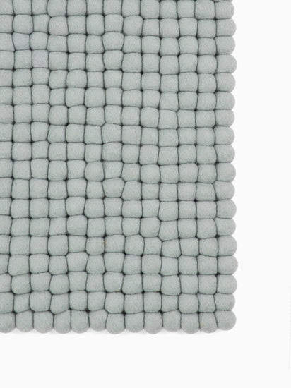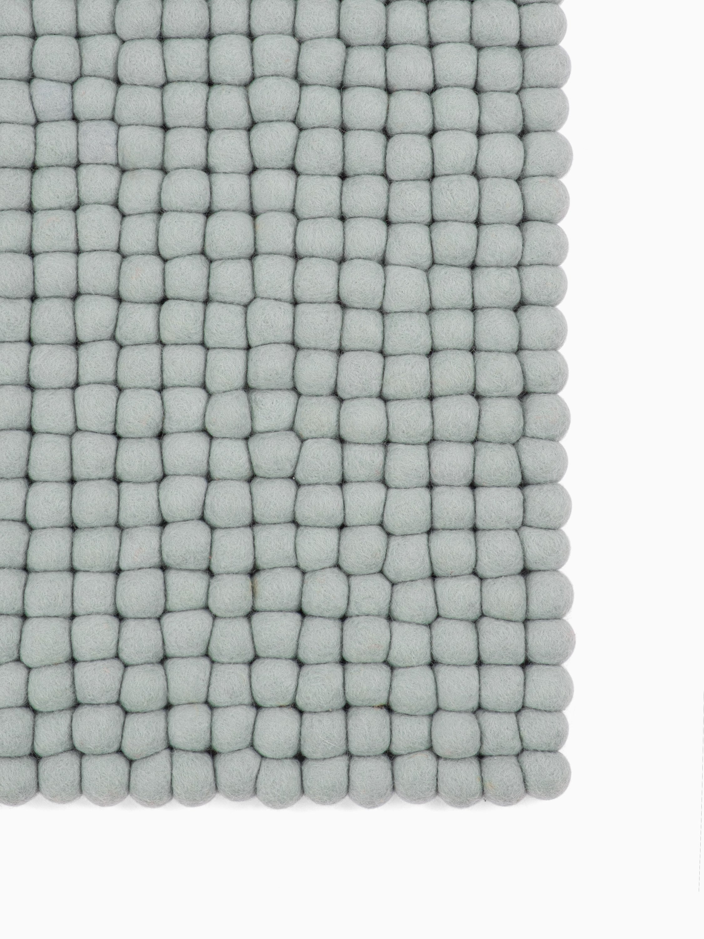 Alfombra rectangular de bolas de fieltro, hecha de pura lana virgen.