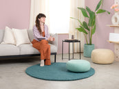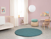 Alfombra redonda de bolas de fieltro, hecha de pura lana virgen.