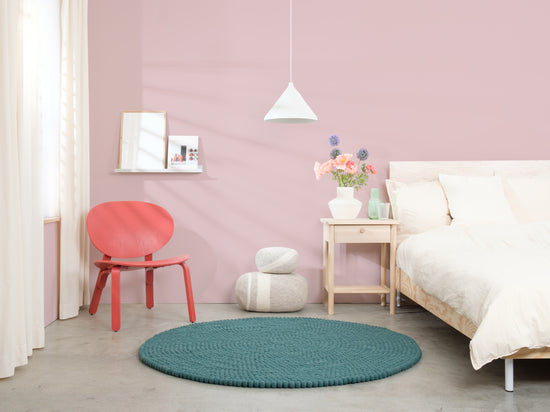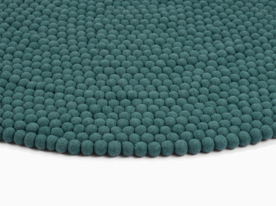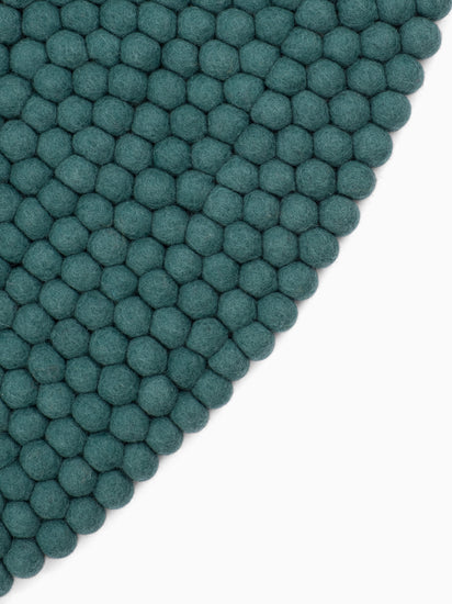 Noah es una alfombra de bolas de fieltro en un profundo tono petróleo. Potente, claro y a la vez relajante – como pieza destacada o base tranquila. Combina con madera clara, hormigón y colores neutros. Notablemente suave, duradera y fácil de mantener. Hecha a mano en Nepal con 100 % pura lana virgen.