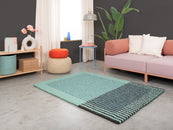 Azules fríos se combinan con gris piedra y un toque de verde abeto. Yukon evoca paisajes silenciosos, lagos glaciares y el azul profundo del norte. Una alfombra que irradia claridad – y transmite calma. Para quienes necesitan despejar la mente.
