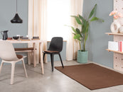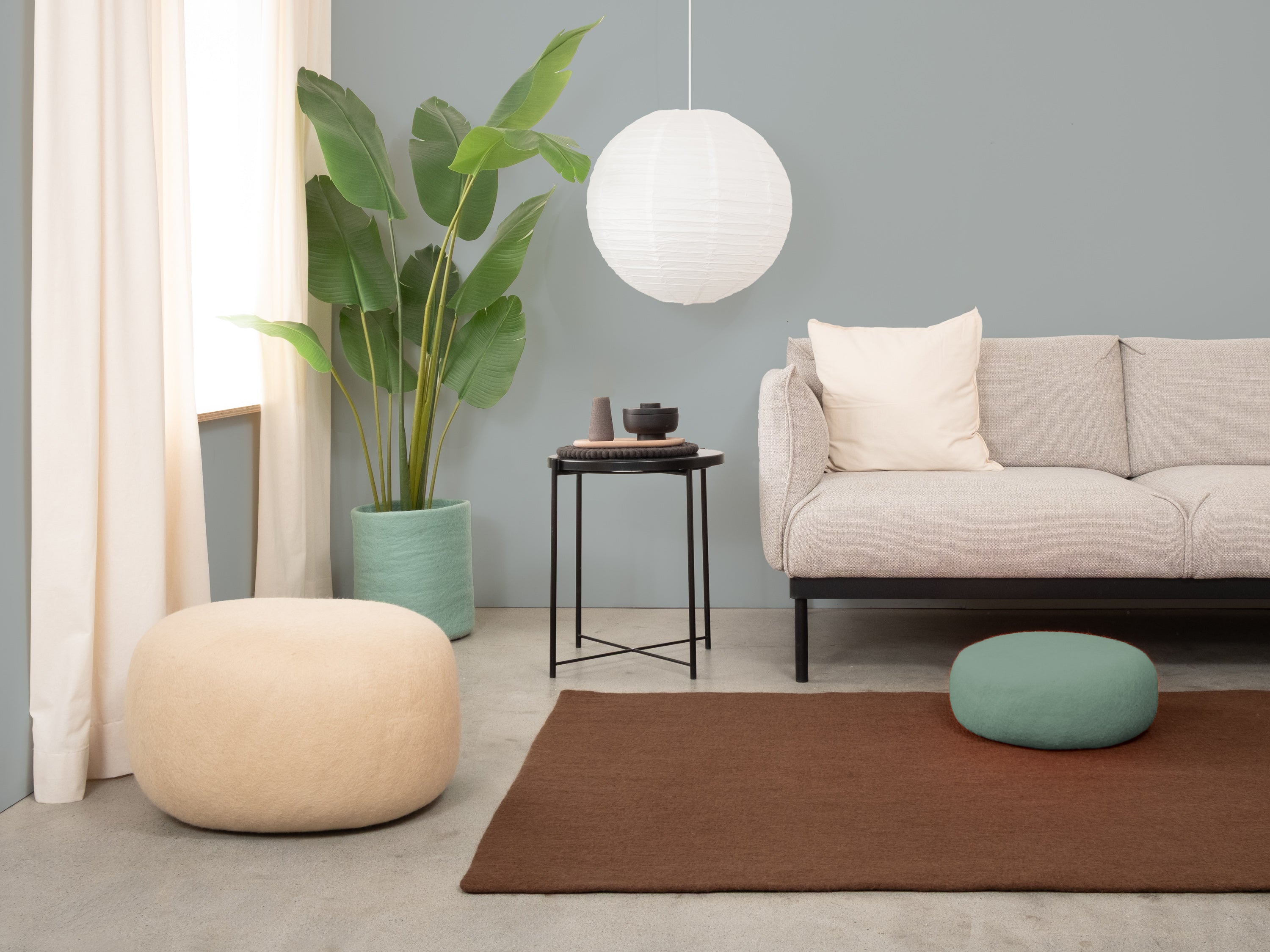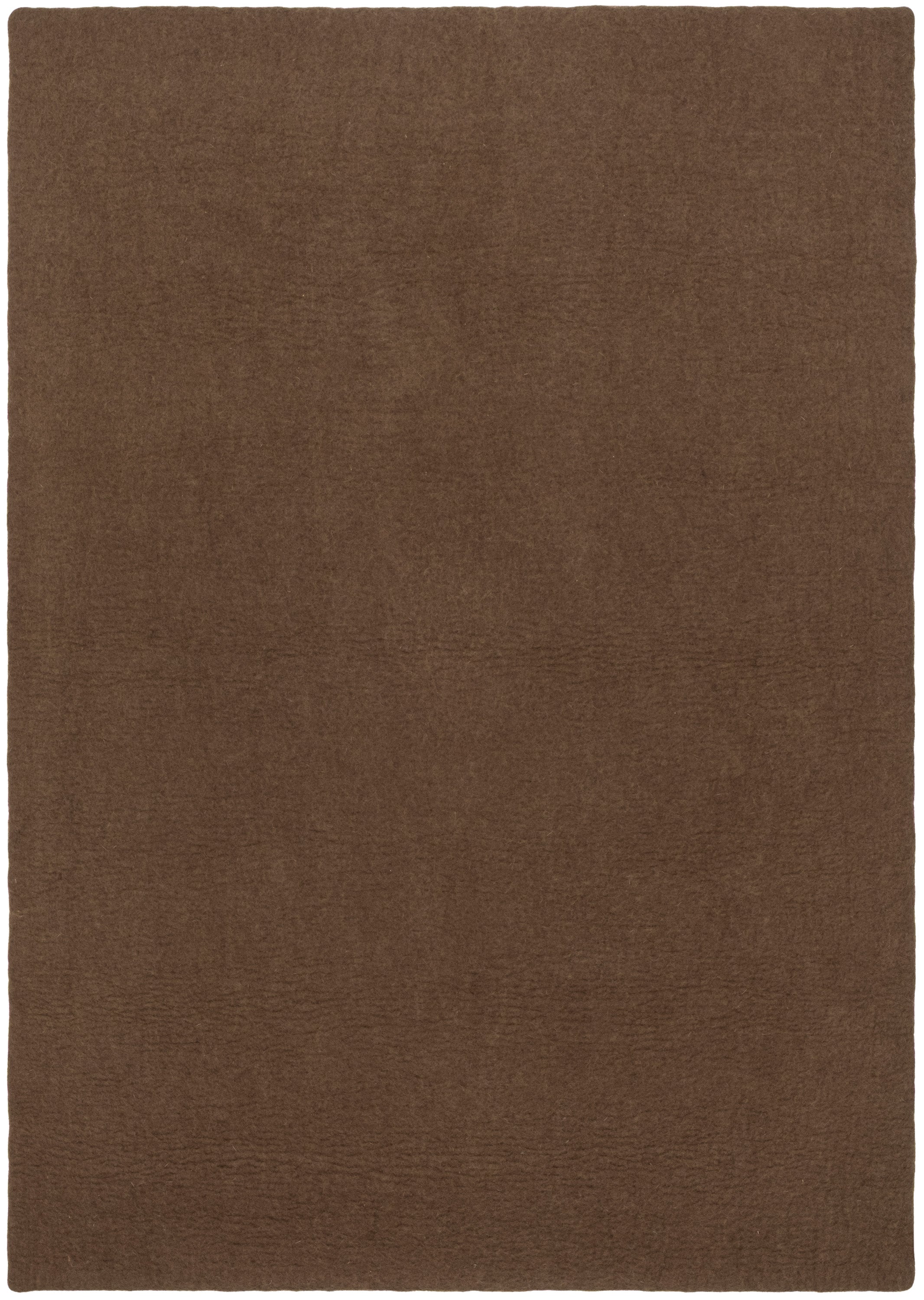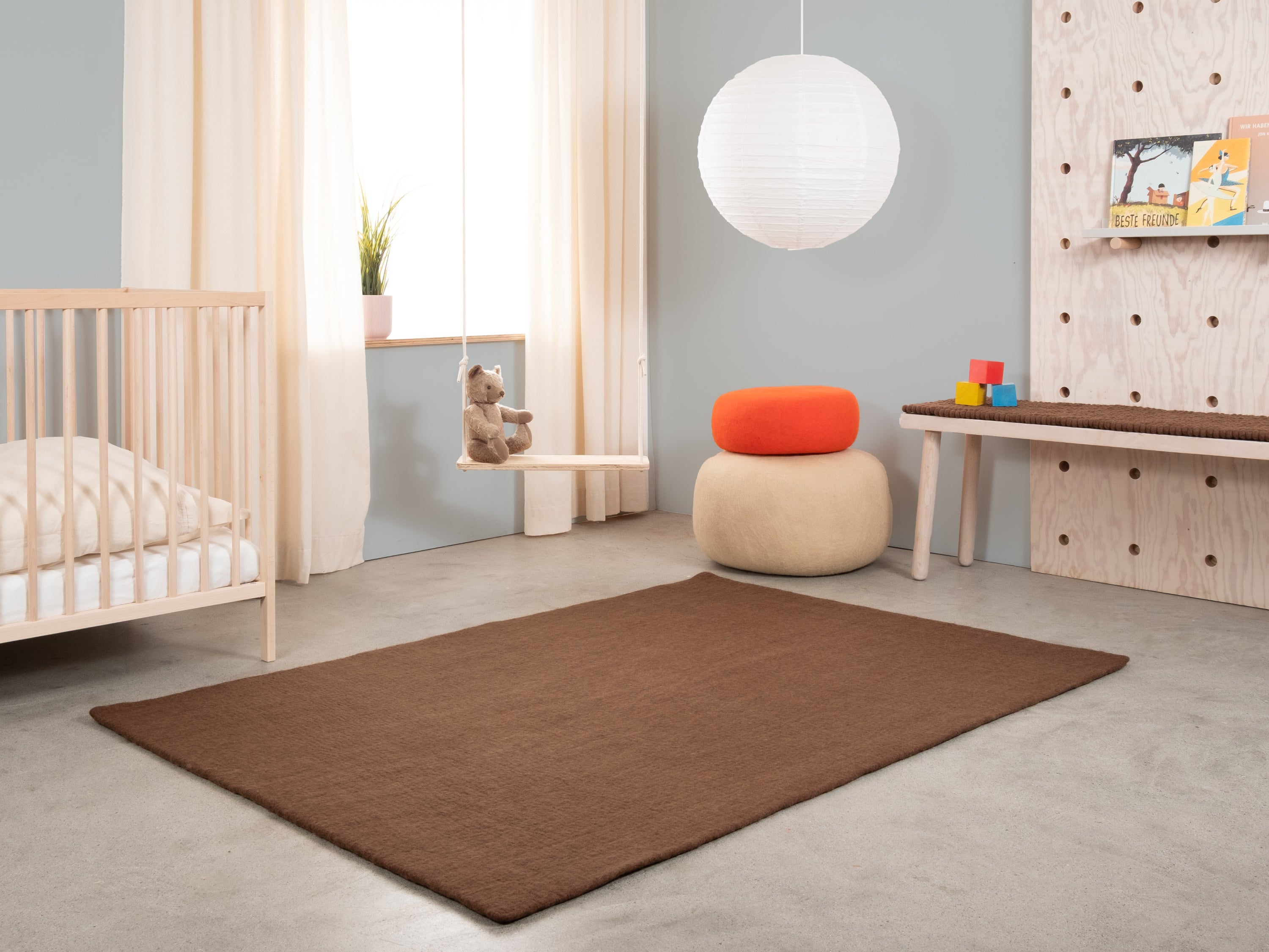 Egon apuesta por un cálido marrón chocolate. La alfombra de fieltro aporta equilibrio a cualquier espacio, creando confort y estructura. Ideal para rincones de lectura y zonas de estar que necesitan calidez. Resistente, estable en su forma y agradable al tacto. Hecha a mano en Nepal – 100 % pura lana virgen.