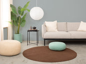 Alfombra de fieltro redonda, hecha de pura lana virgen.