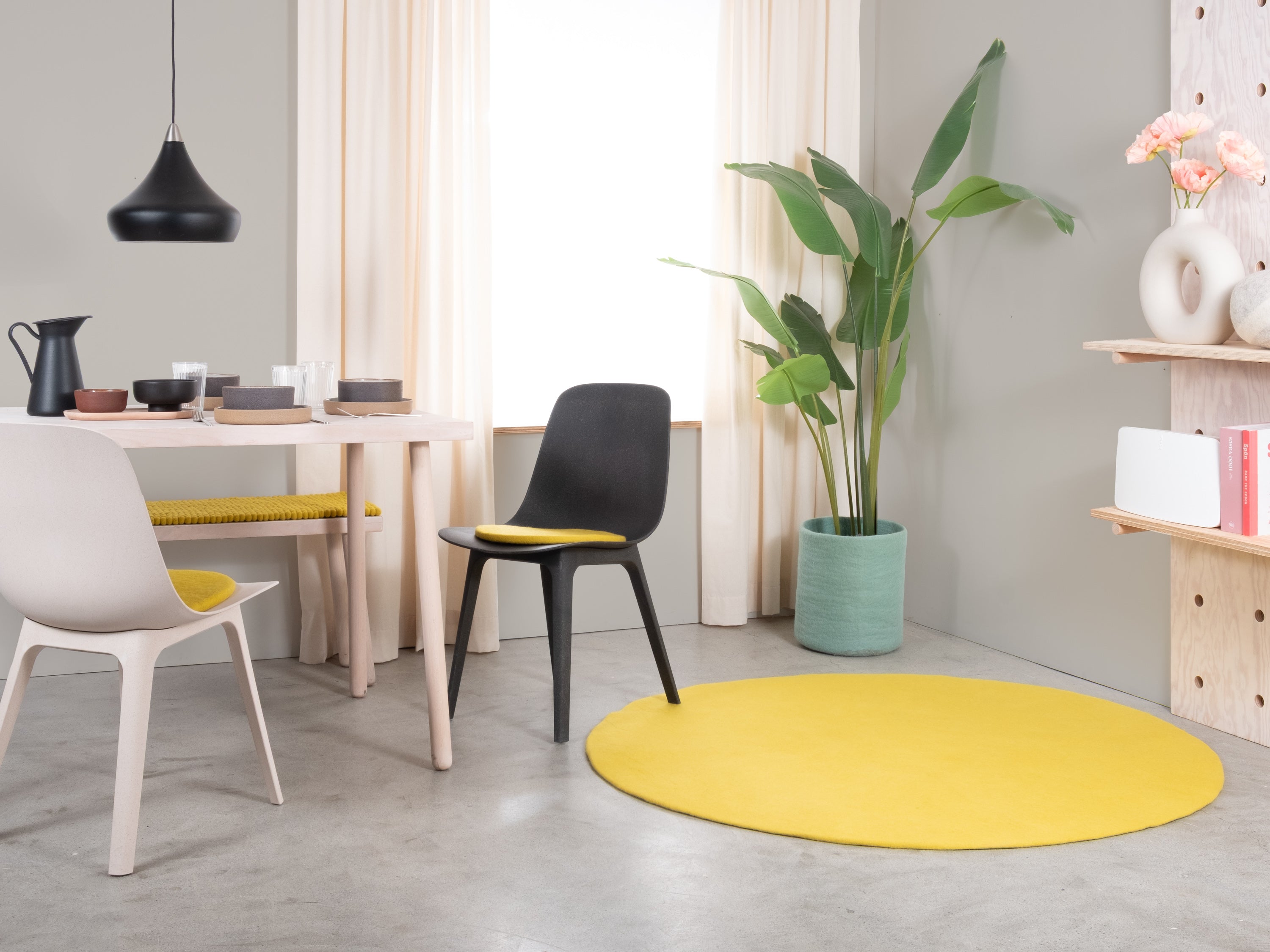 Kata es una alfombra de fieltro en un fresco amarillo verdoso (lima). Brillante, vital y llena de energía, aporta movimiento a la estancia—como acento alegre en el salón o punto de luz en la zona de trabajo. Aporta dinamismo y ligereza. Suave, resistente y fácil de cuidar. Hecha a mano en Nepal con 100 % lana virgen.