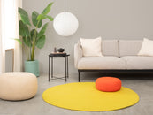 Alfombra de fieltro redonda, hecha de pura lana virgen.