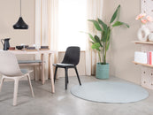 Liv es una alfombra de fieltro en un azul claro y frío. Aporta claridad y ligereza y hace que las estancias pequeñas parezcan más grandes. Combina con blanco, roble y tonos neutros, como base tranquila o acento fresco. Suave, amortigua el sonido y es naturalmente repelente a la suciedad. Hecha a mano en Nepal con 100 % lana virgen.
