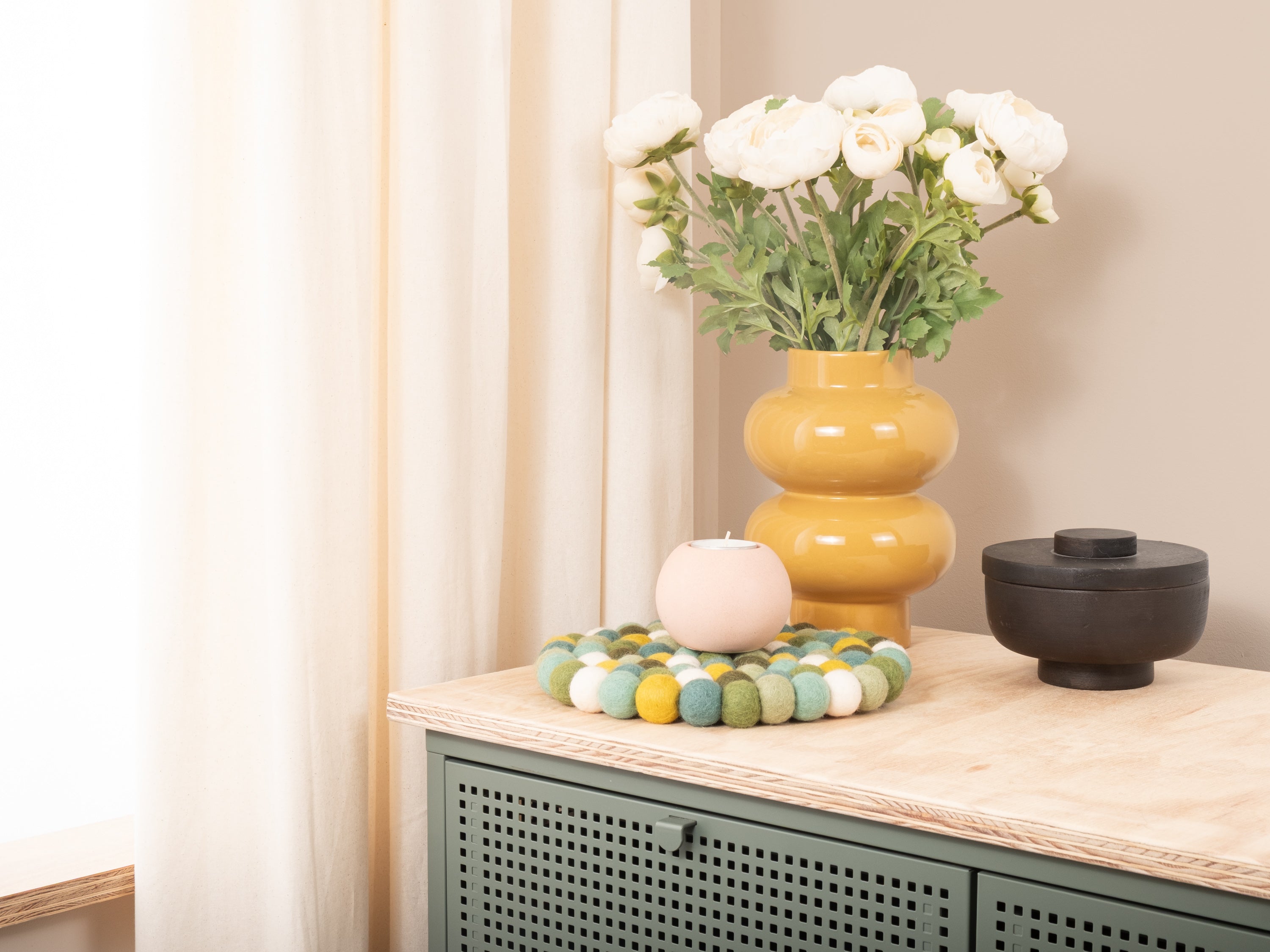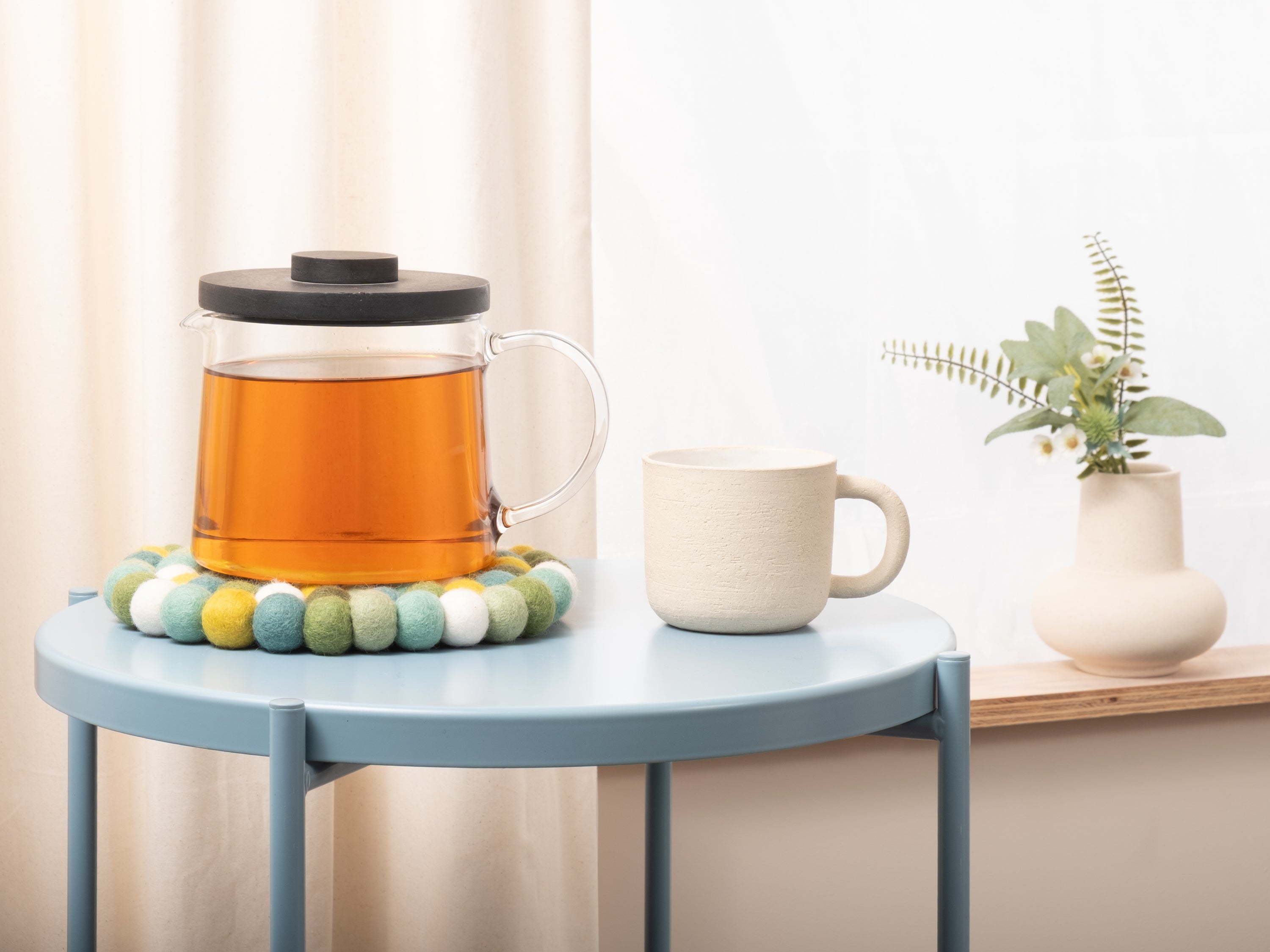 El salvamanteles Finn en el color multicolor combina funcionalidad con un diseño encantador. Robusto, resistente al calor, repelente al agua y a la suciedad, y reversible. Fabricado con pura lana virgen, hecho a mano en Nepal y producido en condiciones justas.
