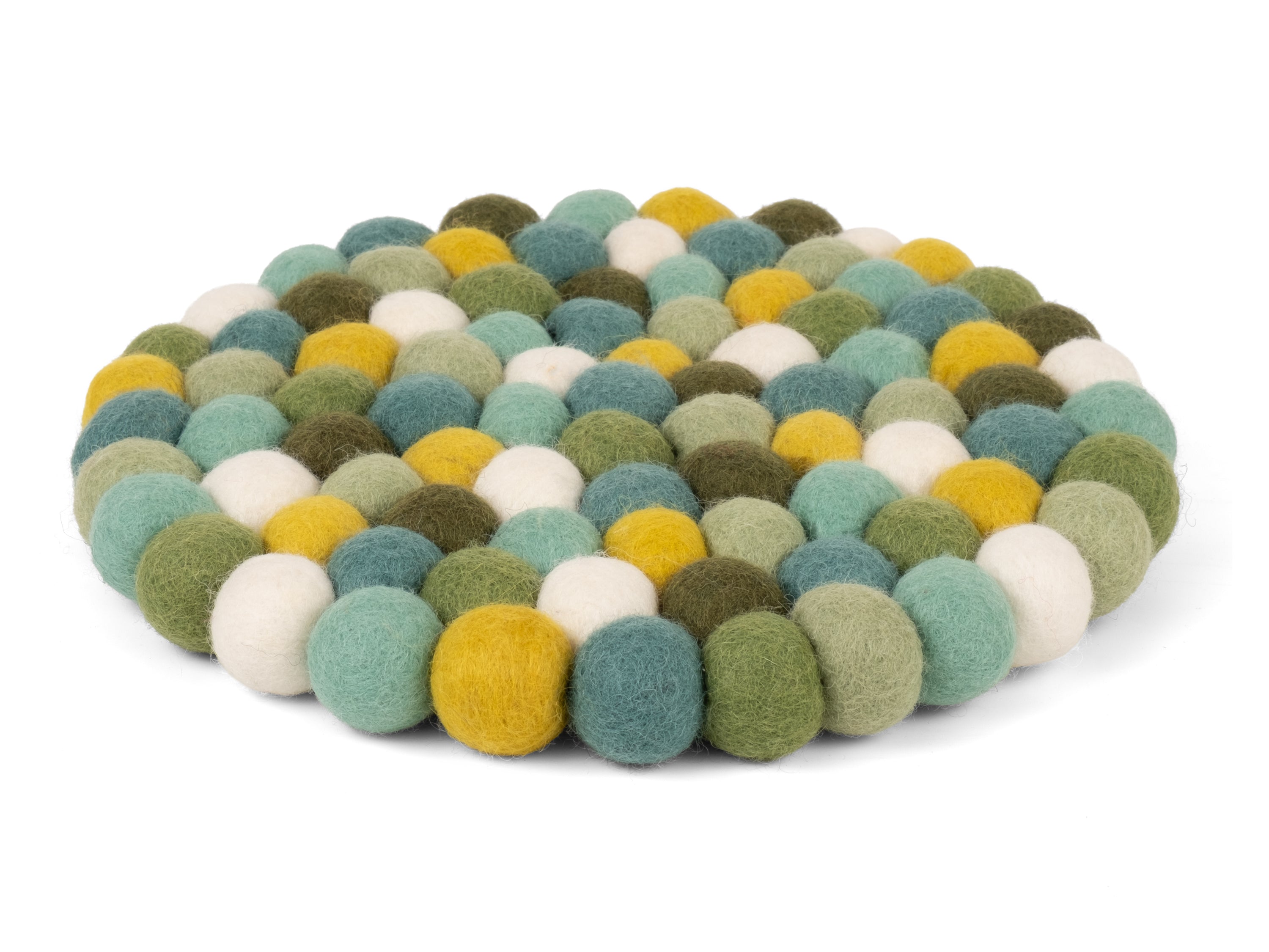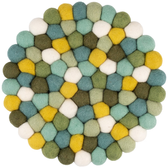 Salvamanteles redondo y multicolor en verde / turquesa / blanco de pura lana virgen | myfelt