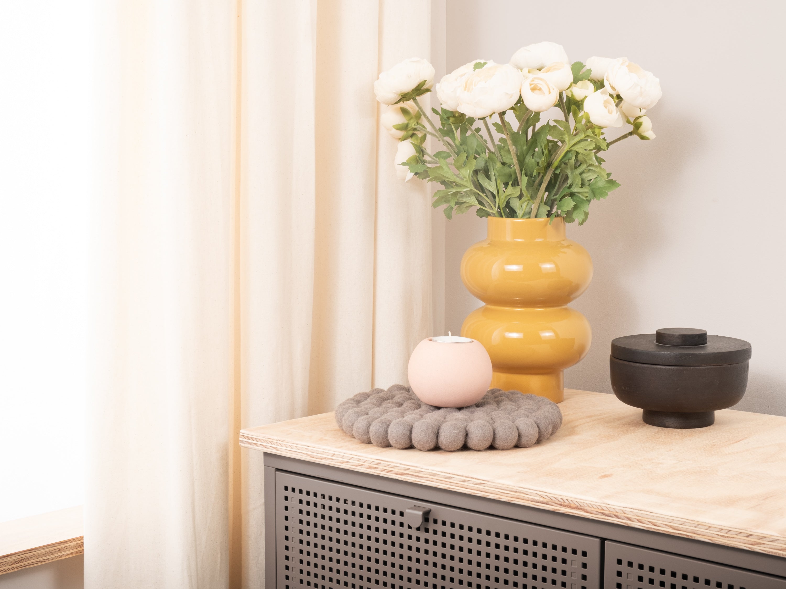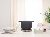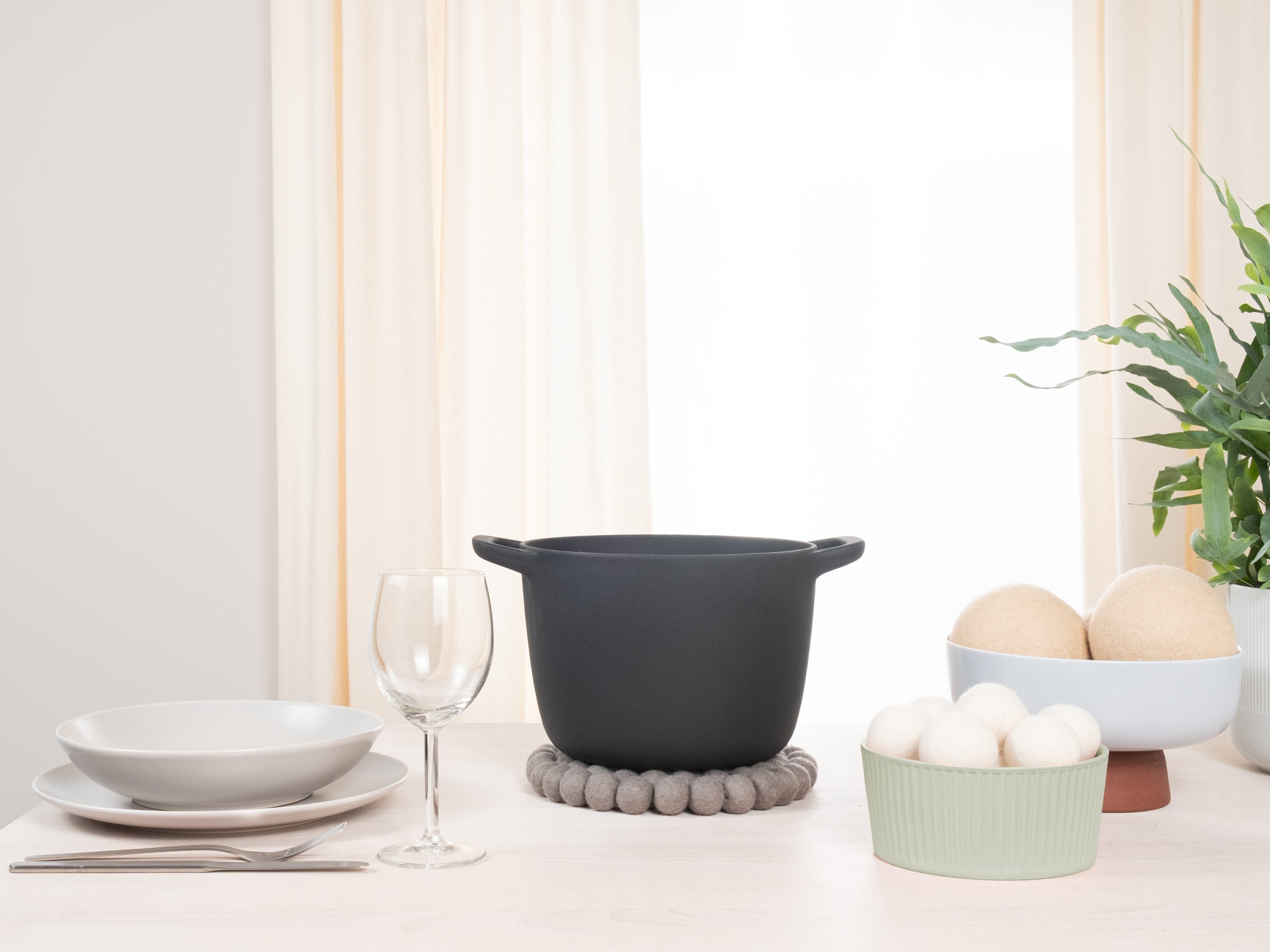 El salvamanteles Kian en el color gris combina funcionalidad con un diseño encantador. Robusto, resistente al calor, repelente al agua y a la suciedad, y reversible. Fabricado con pura lana virgen, hecho a mano en Nepal y producido en condiciones justas.
