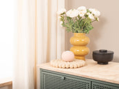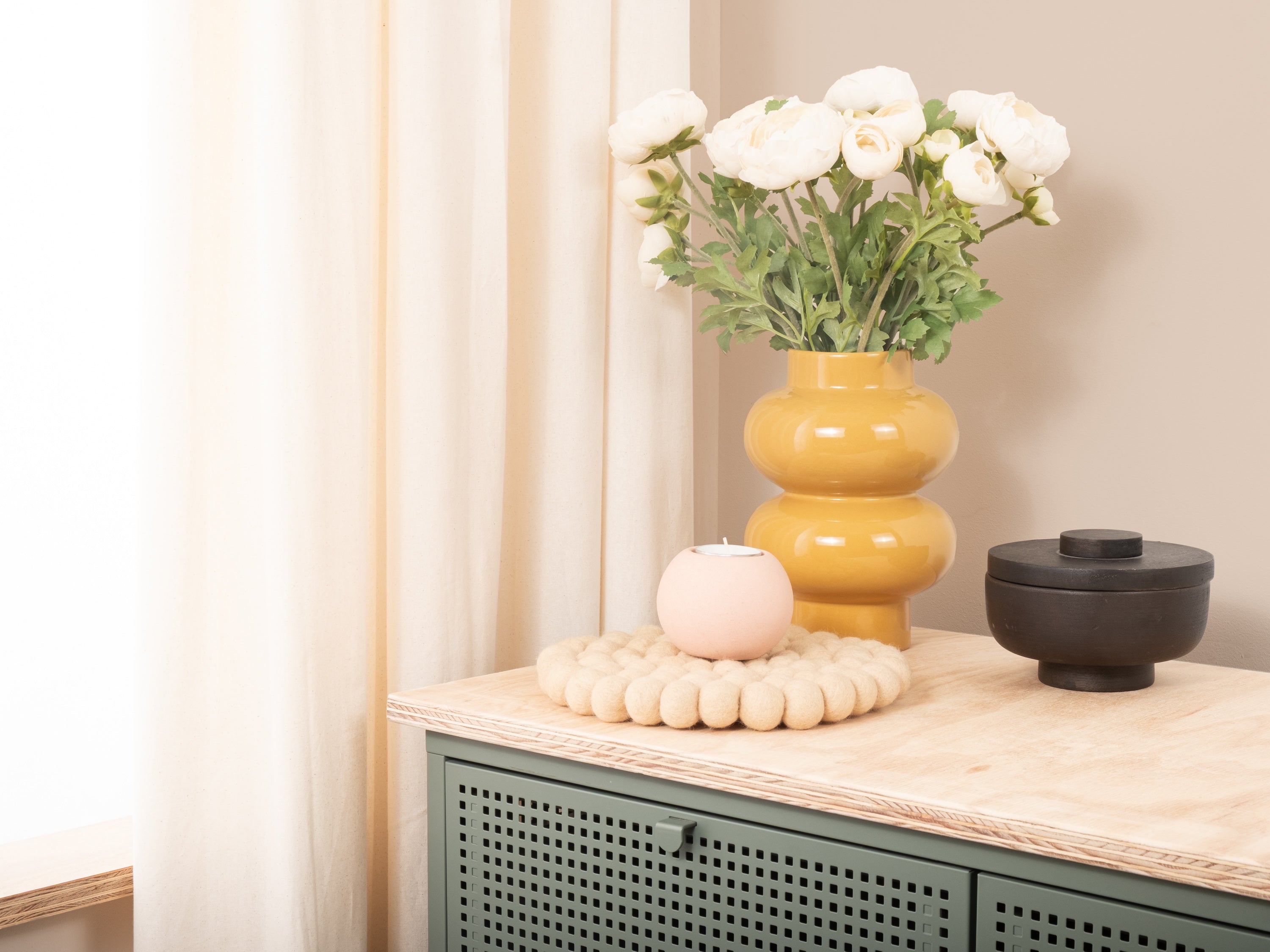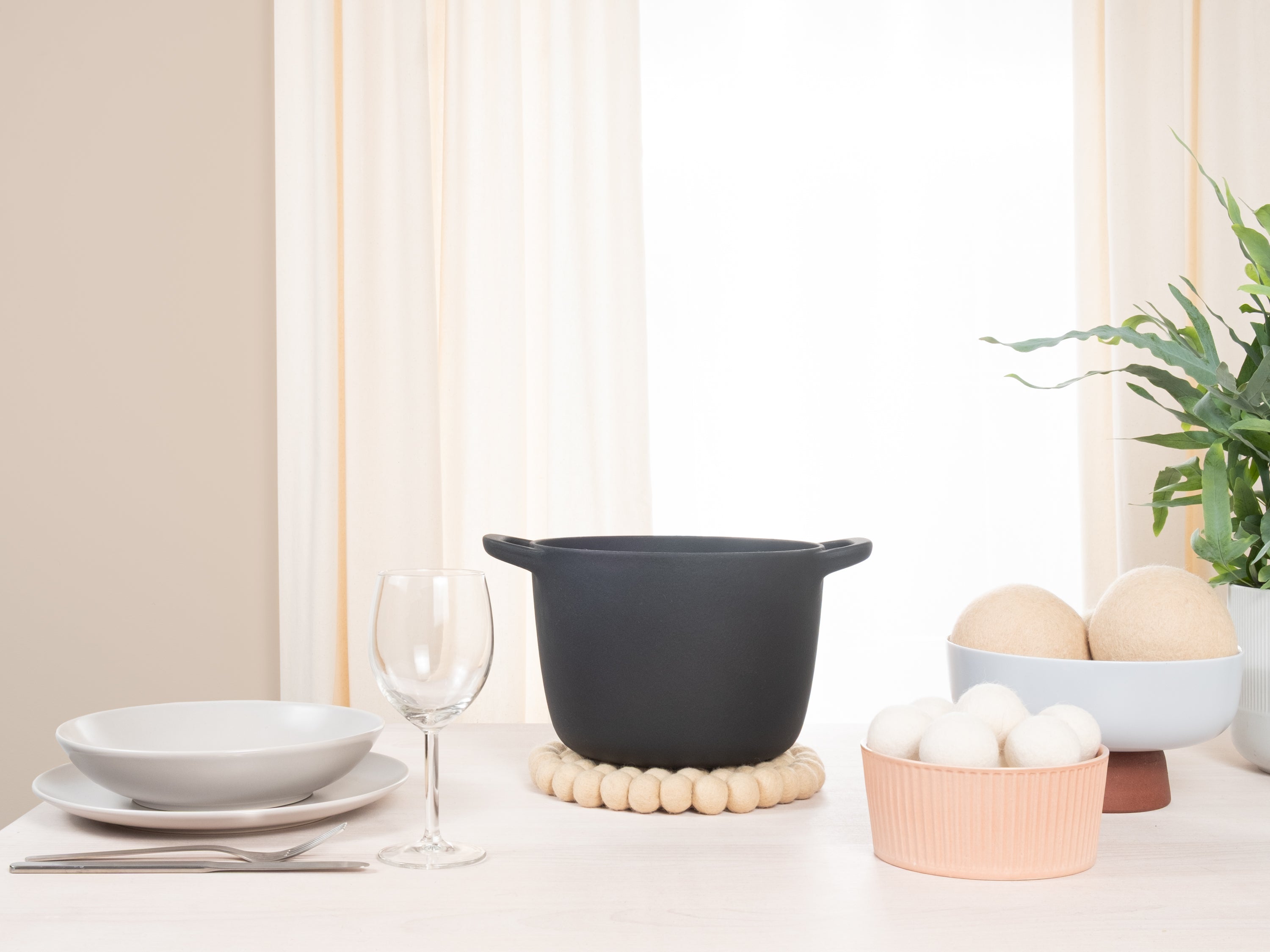 El salvamanteles Levi en el color beige combina funcionalidad con un diseño encantador. Robusto, resistente al calor, repelente al agua y a la suciedad, y reversible. Fabricado con pura lana virgen, hecho a mano en Nepal y producido en condiciones justas.