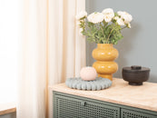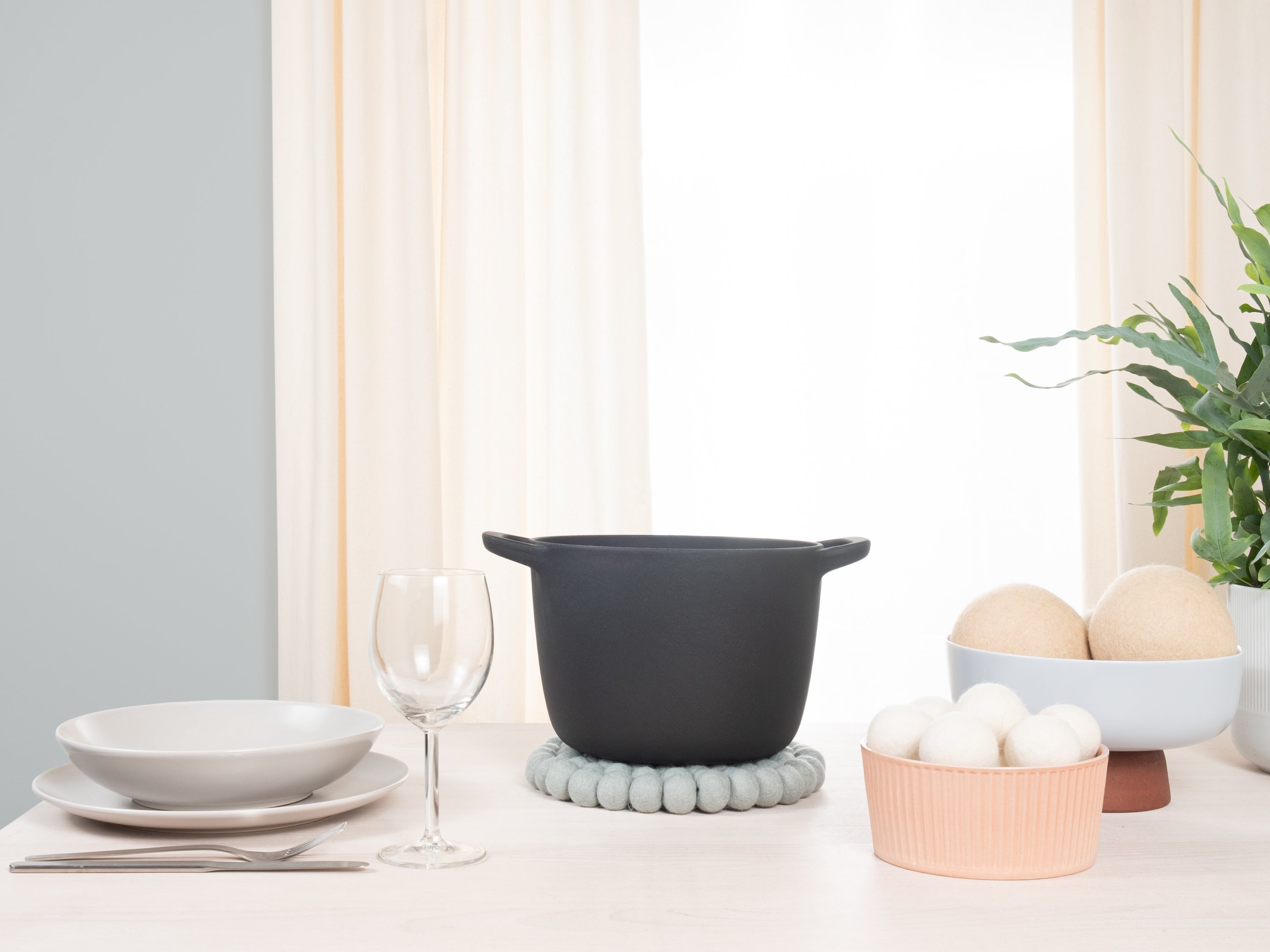 El salvamanteles Liv en el color azul claro combina funcionalidad con un diseño encantador. Robusto, resistente al calor, repelente al agua y a la suciedad, y reversible. Fabricado con pura lana virgen, hecho a mano en Nepal y producido en condiciones justas.