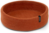 Cesta para gatos de color rojo óxido hecha a mano con 100% lana virgen de Nueva Zelanda.