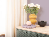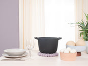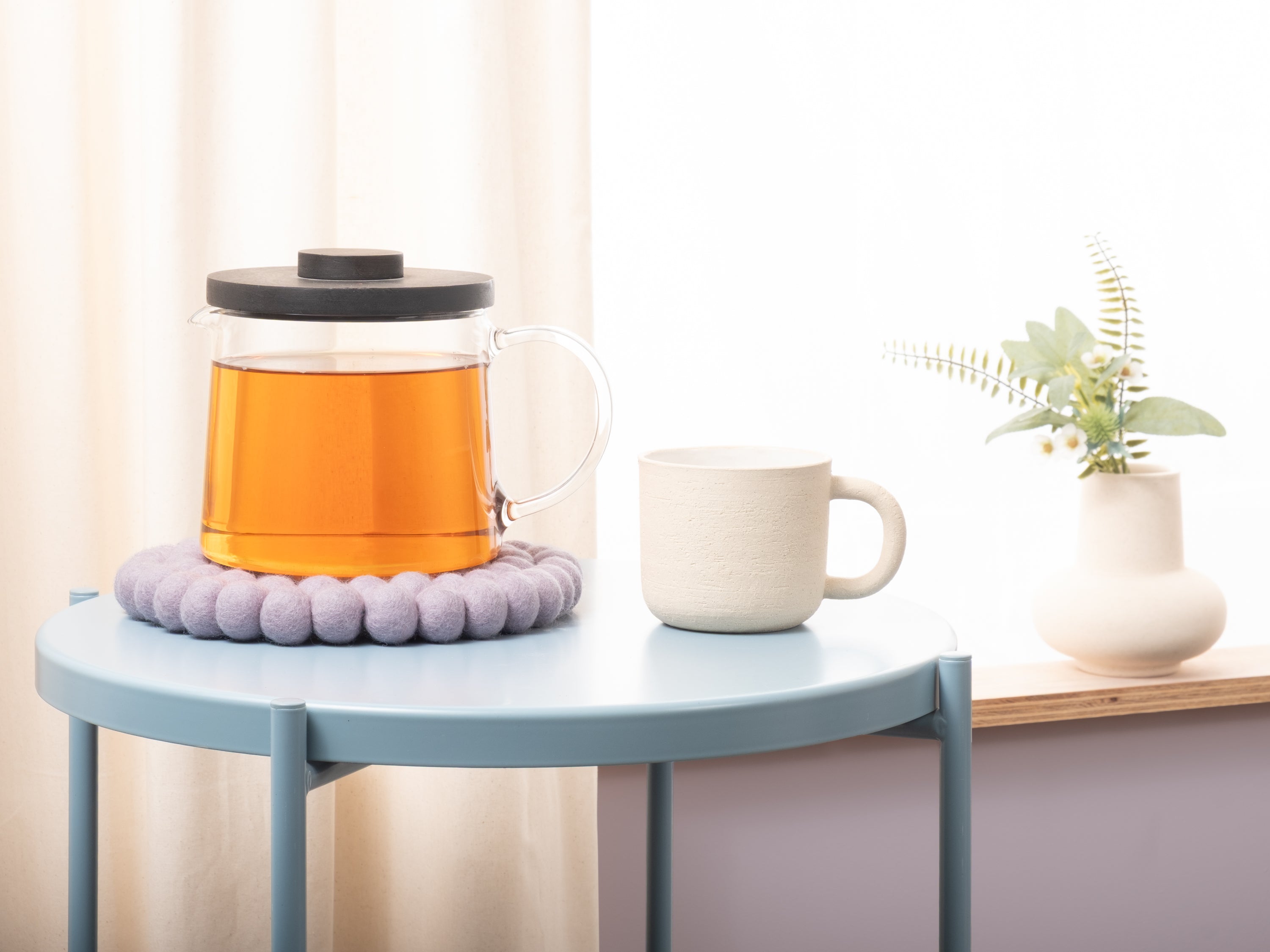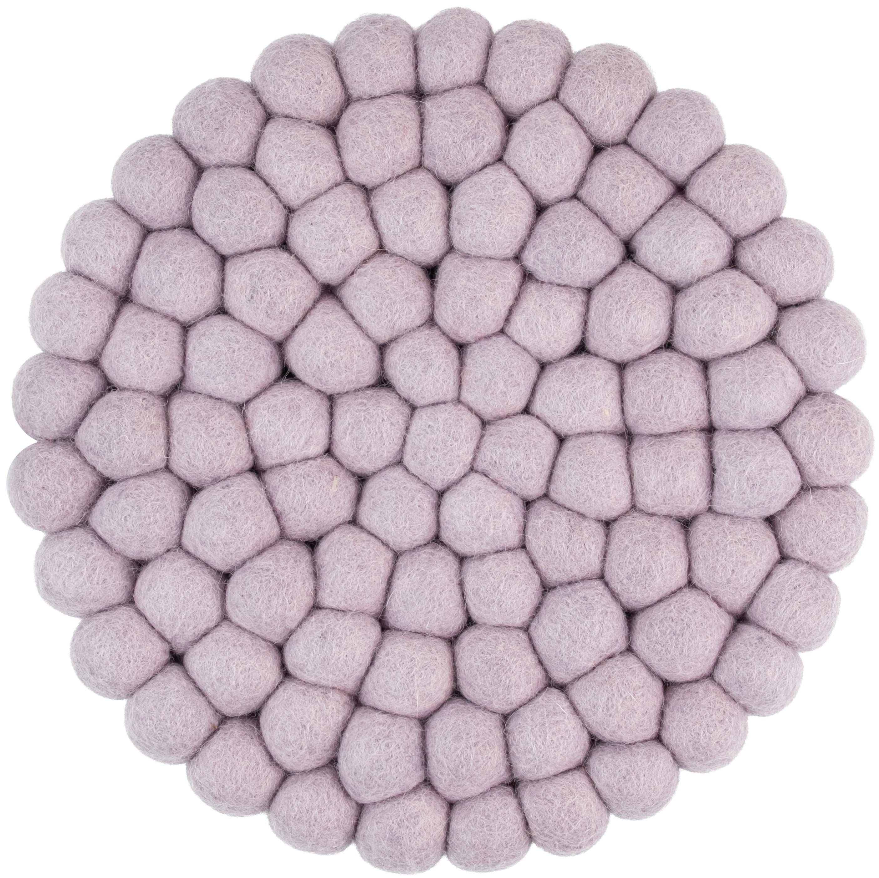 El salvamanteles Marla en el color violeta claro combina funcionalidad con un diseño encantador. Robusto, resistente al calor, repelente al agua y a la suciedad, y reversible. Fabricado con pura lana virgen, hecho a mano en Nepal y producido en condiciones justas.