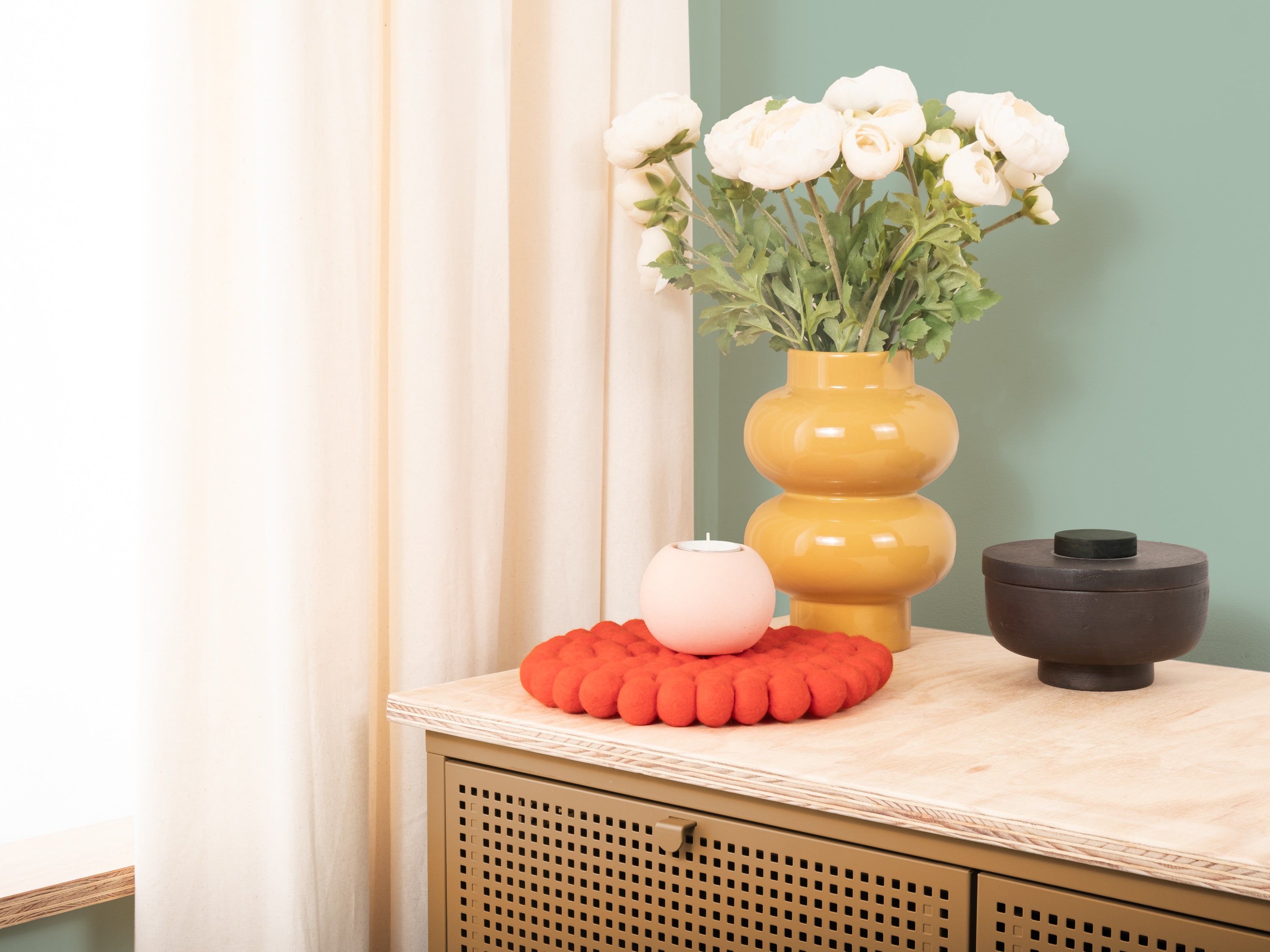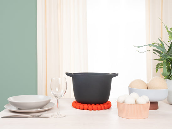 Salvamanteles redondo rojo anaranjado de pura lana virgen | myfelt