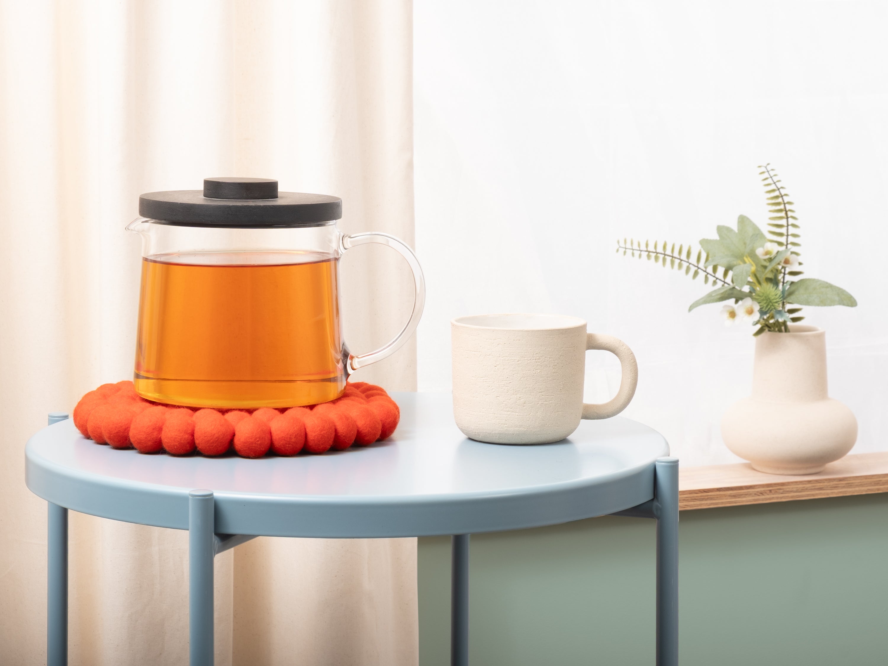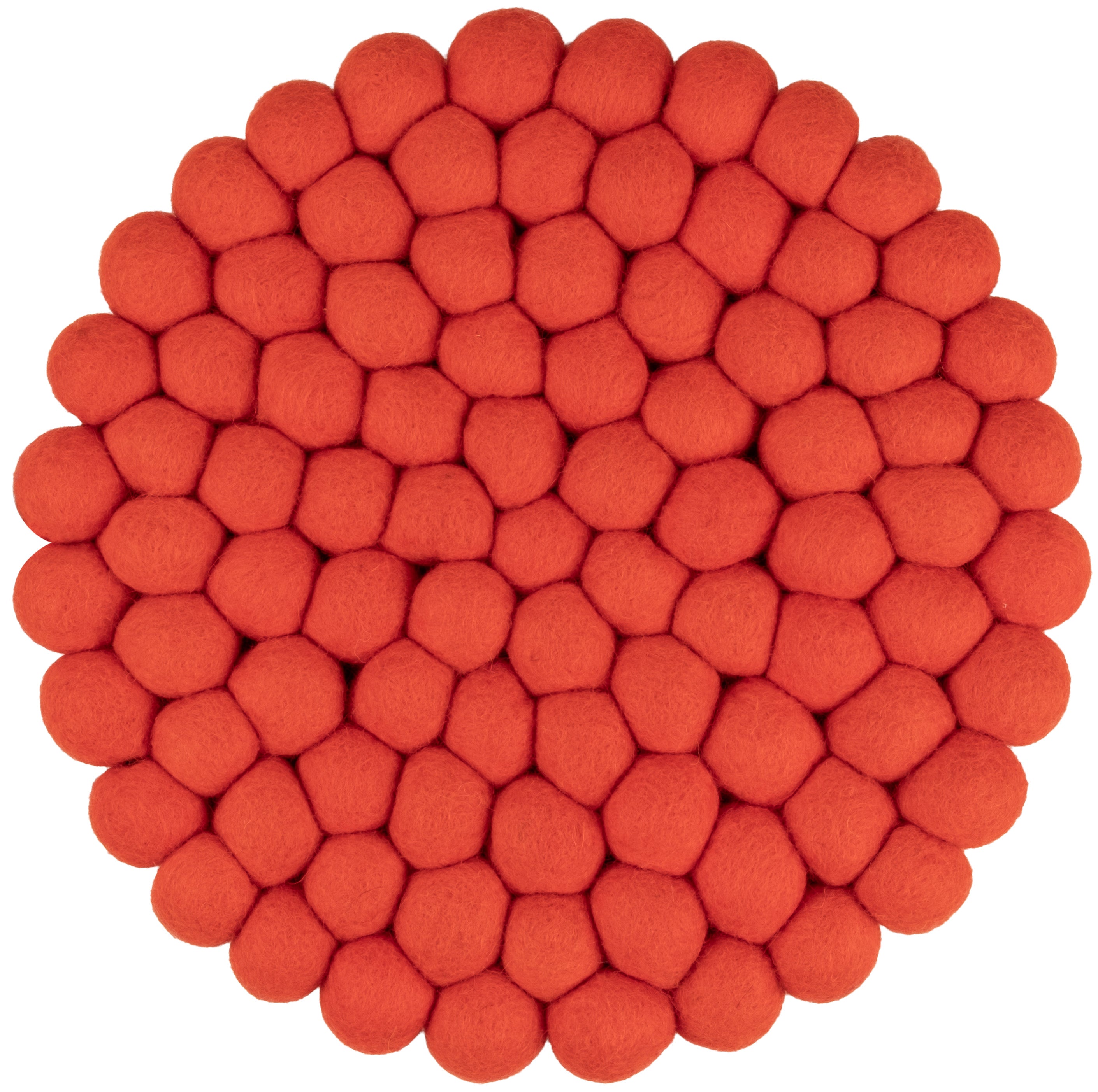 El salvamanteles Mats en el color rojo anaranjado combina funcionalidad con un diseño encantador. Robusto, resistente al calor, repelente al agua y a la suciedad, y reversible. Fabricado con pura lana virgen, hecho a mano en Nepal y producido en condiciones justas.