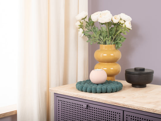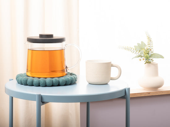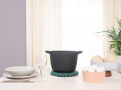 El salvamanteles Noah en el color petróleo combina funcionalidad con un diseño encantador. Robusto, resistente al calor, repelente al agua y a la suciedad, y reversible. Fabricado con pura lana virgen, hecho a mano en Nepal y producido en condiciones justas.