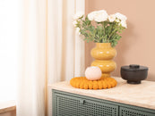 Salvamanteles redondo ocre amarillo de pura lana virgen | myfelt