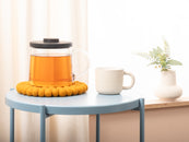 El salvamanteles Risa en el color amarillo ocre combina funcionalidad con un diseño encantador. Robusto, resistente al calor, repelente al agua y a la suciedad, y reversible. Fabricado con pura lana virgen, hecho a mano en Nepal y producido en condiciones justas.
