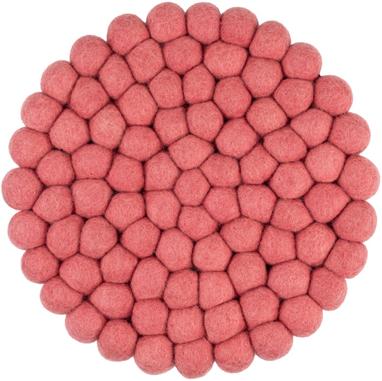 Salvamanteles redondo de color rosa coral de pura lana virgen | myfelt